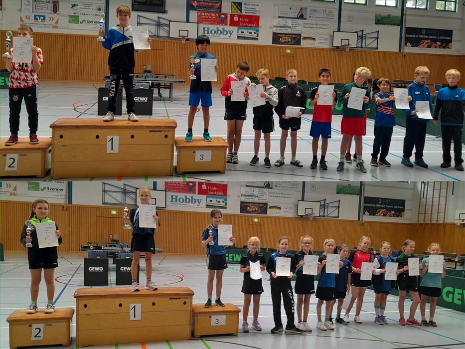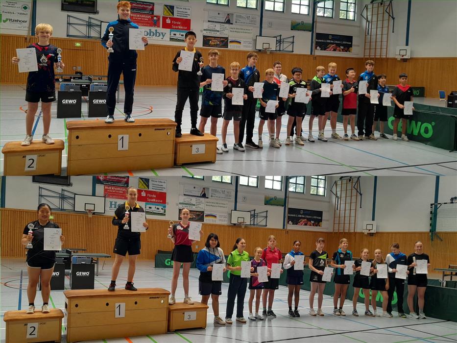 Datum: 21.09.25 Verfasser: Per Ove GemkowDer erste Morgen der Landesrangliste Jugend und Mädchen 11 und 15 begann ambivalent: Nach etlichen Wolkentagen schien mal wieder die Sonne in die Bürgermeister-Schadwinkel-Halle., sodass die Halle hell erleuchtet war. Leider so erleuchtet, dass deswegen einige Tische zeitweise gesperrt werden mussten. Deshalb wurde der geplante Zeitplan für den kompletten Tag ausgesetzt. Die Turnierleitung durfte also alle Spiele aufrufen, was die Planungen von Schiedsrichtern und Betreuern zwangsweise durcheinanderwürfelte. Trotzdem gingen die Spiele zügig voran und man endete sogar zwei Stunden früher als geplant. Am zweiten Turniertag gab es noch intensivere und knappere Partien als am ersten Tag. Dies spiegelte sich auch in den Endtabellen wider, die relativ homogene Teilnehmerfelder zeigten – viele Plätze trennte nur die Satz- oder sogar Balldifferenz.In der Altersklasse 11 erspielten sich im Format Alle-gegen-Alle Anna Krüger (TSV Trittau) und Maleo Eichwald (TSV Bordesholm) an die Spitze. Bei den Mädchen folgte bei gleichem Spielverhältnis Johanna Wulf (SV Fockbek), den dritten Platz erkämpfte sich Matilda Schröder (TSV Schwarzenbek). In der Jugend-11-Konkurrenz waren die Podiumsplätze ebenfalls hart umstritten: Da die zwischen Platz zwei und Platz fünf platzierten Spieler alle ein 8:3 Spielverhältnis hatten, entschied das Satzverhältnis hier. Am Ende freuten sich Niklas Galda (TuS Esingen) über Silber und Kosuke Takayama (Lübecker TS) über Bronze.Den Titel in der Mädchen-15-Konkurrenz errang die Abwehrspielerin Valeria Klara (TSV Schwarzenbek), die sich ohne Spielverlust durch das Turnier arbeitete, vor Jiao Yang Li (TSV Trittau) und Lyv Pötzl (SC Mittelpunkt Nortorf). Bei der Jugend 15 konnte sich im letzten Spiel des Tages Hannes Schubert (SSC Hagen Ahrensburg) gegen Mats Severin (TS Einfeld Neumünster) durchsetzen und verwies seinen Konkurrenten damit auf Rang zwei. Dritter wurde Huaian Ethan Zhou (TTC Ramsharde).Alle Landesturniere werden maßgeblich durch die Akteure vor Ort organisiert und unterstützt. In dem Sinne möchte ich Karsten Auzins – und allen Helfer*innen vom SV Fockbek – für ihre Arbeit bei Aufbau, Imbiss und vielem mehr danken. Ein ebenso großes Dankeschön gilt allen Tischschiedsrichter*innen, die mit wenig Pausen und hoher Präzision alle Partien begleiteten, sowie dem eingespielten OSR-Duo. Nicht vergessen werden darf außerdem Matthias Pohl, der die Turnierleitung mit Ruhe und Routine übernahm.Schlussendlich gilt mein Dank auch allen Betreuer*innen, Eltern und Spieler*innen, die die Veranstaltung erst mit Leben gefüllt haben.Sportliche GrüßePer GemkowPS: Alle exakten Ergebnisse gibt es wie immer im TT-Turniercenter :) Weitere Informationen: https://www.tt-turniercenter.de/?TID=14394 |